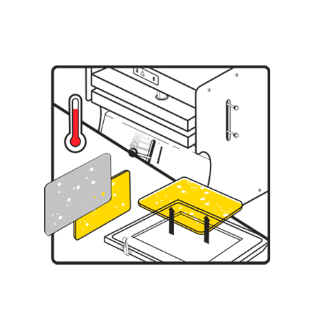 Moldeo final del material usando calor, vacío y presión para darle forma al producto.
